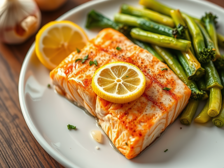 Juicy salmon fillets with a zesty lemon garlic marinade.