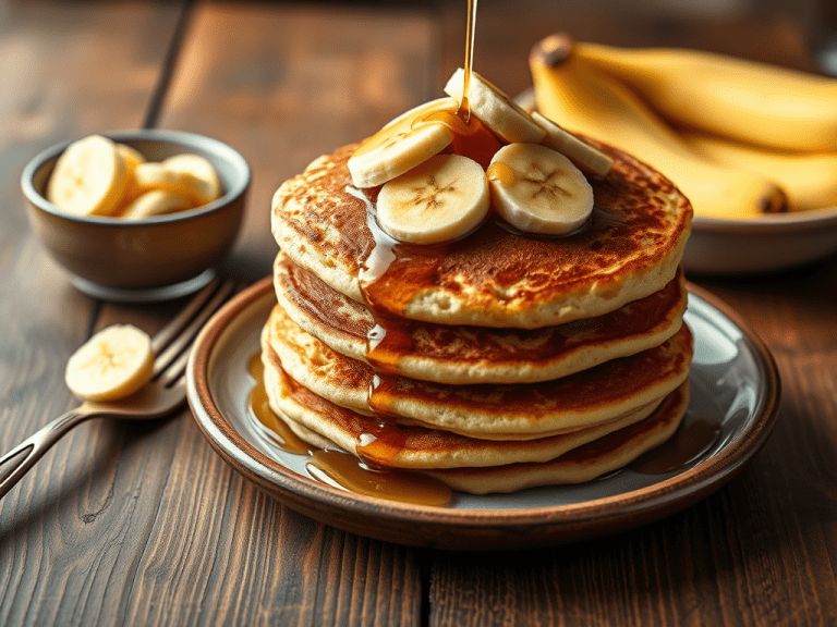 Soft and fluffy pancakes infused with sweet ripe bananas for a comforting breakfast treat.