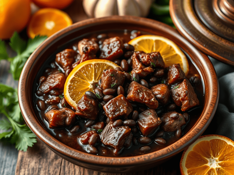 Sauté onion and garlic, add beans, pork, bay leaf, and 4 cups water.