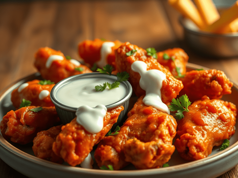 A twist on classic Buffalo wings with a creamy ranch flavor infusion.