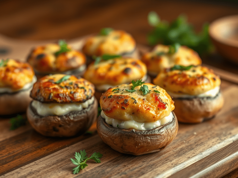 Savory mushrooms stuffed with a cheesy garlic filling, baked until golden.