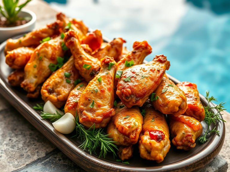 Savory chicken wings seasoned with a fragrant garlic and herb blend.