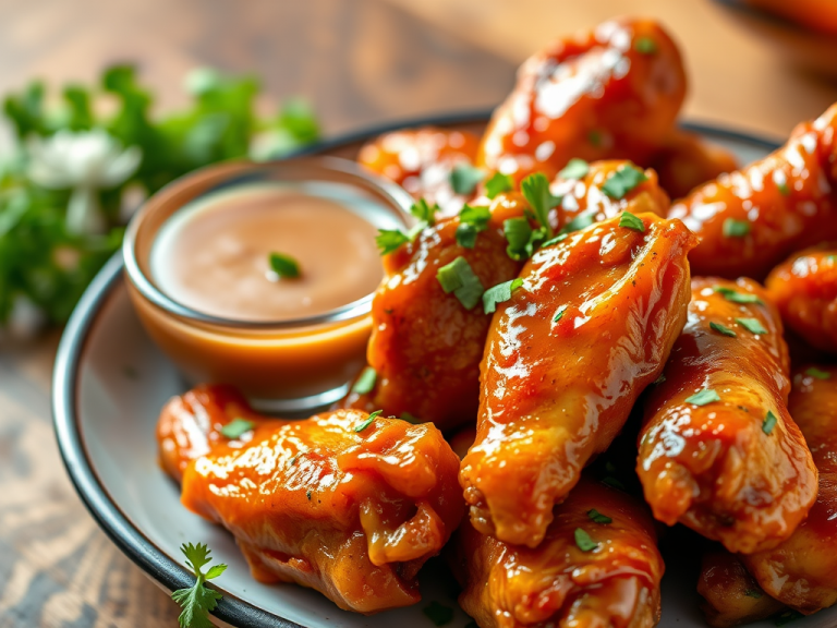 Sweet and smoky chicken wings coated in a rich honey BBQ sauce, perfect for game day.