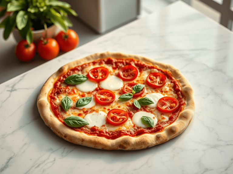 A classic Italian pizza with fresh tomatoes, mozzarella.