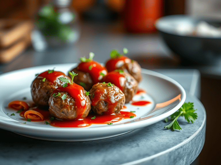 Juicy mini meatballs glazed with a sweet and tangy sauce, perfect for appetizers.