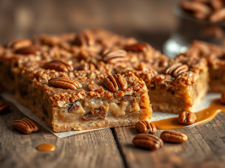 Rich pecan pie bars with a buttery crust, perfect for fall desserts.