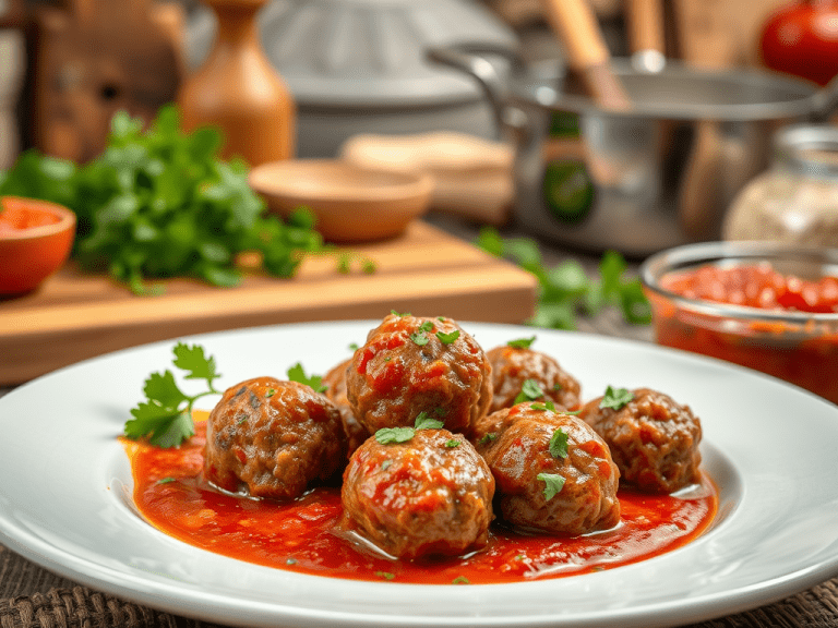 Add tomatoes, simmer 30 minutes, return meatballs to sauce.