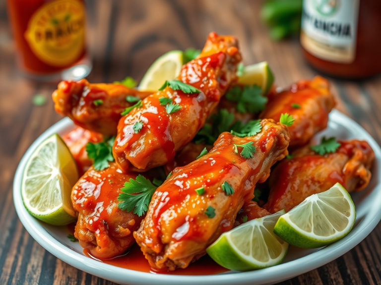 Spicy and zesty chicken wings tossed in a fiery Sriracha lime sauce.