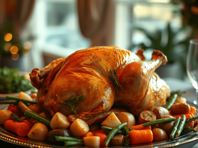 Roast at 375°F (190°C) for 90 minutes until internal temperature is 165°F (74°C).