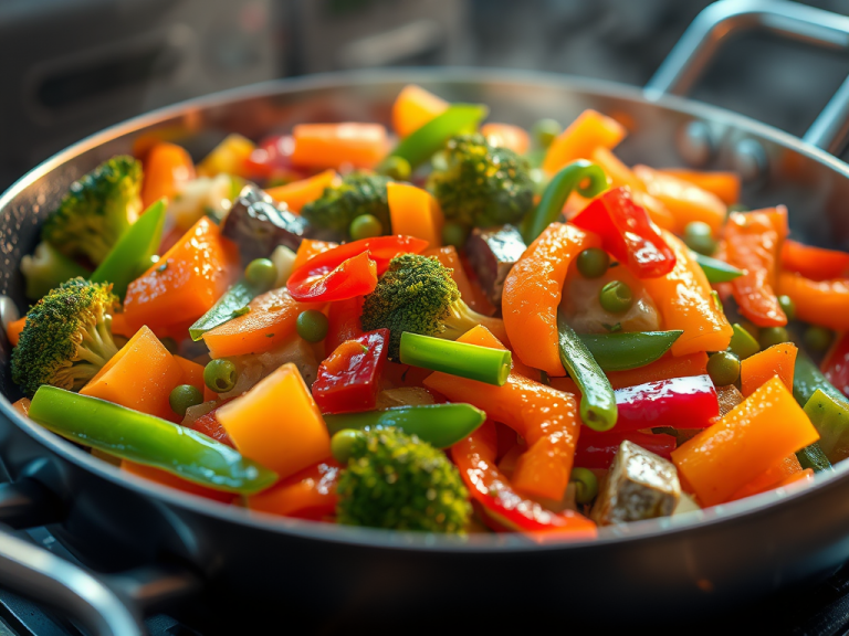 Add bell pepper, broccoli, carrot, and snap peas. Stir-fry for 5-7 minutes.